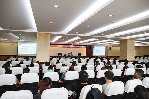 党课由校党委副书记吕逢铬主持,省委第十二巡回指导组石福新同志、校长李定珍、副校长张朴、纪委书记林国安,副校长廖良林、党委委员禹明华等校领导与全体教师党员、学生党员代表共计300多人一起聆听了党课。