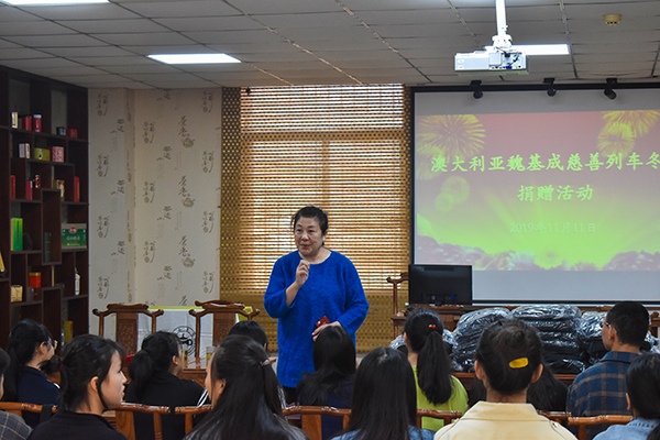 本网讯(记者杨路平 陈佳凤 胡浪)尽管秋尽冬来,湖南商务职院茶艺室却荡漾着满满的暖意,热闹非凡。11月11日下午,校长李定珍,孟妈妈及其团队和20余名受赠学生齐聚一堂,参加澳大利亚魏基成慈善列车冬衣捐赠活动。