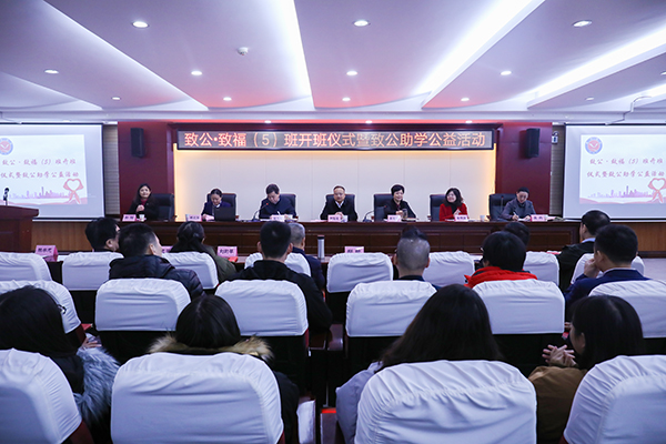 ▲11月29日上午,致公·致福五班开班仪式暨致公助学公益活动在我校举行。