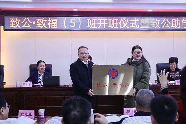 李定珍代表学校对长期以来支持和帮助学校建设发展、学生教育培养的领导、嘉宾、社会爱心人士表示衷心感谢。她表示,致公党湖南省委及社会各界力量捐资设立“致公·致福(5)班”,充分体现了致公湖南省委及社会各界力量情系教育,用实际行动回报社会的拳拳爱心。今后学校将加强“致公·致福(5)”班日常教学管理,培养学生的社会责任感和健全人格,使“致公·致福(5)”班的学生都能以阳光的心态学习和生活。同时,李定珍希望同学们能把爱心人士的关爱化做奋发学习,报效祖国的强大精神动力,以优异的表现报答全社会的关爱。