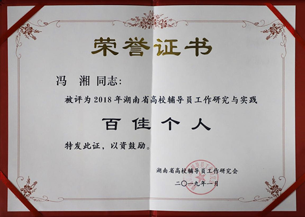 近日,从湖南省高校辅导员工作研究会得知,经湖南省高校学生思想政治教育研究会、湖南省辅导员工作研究会考核评审,我校荣获“湖南省高等学校辅导员工作研究与实践先进单位”;冯湘荣获“湖南省高校辅导员工作研究与实践百佳个人”;阙庆华荣获“湖南省高校学生思想政治教育研究与实践百佳个人”。