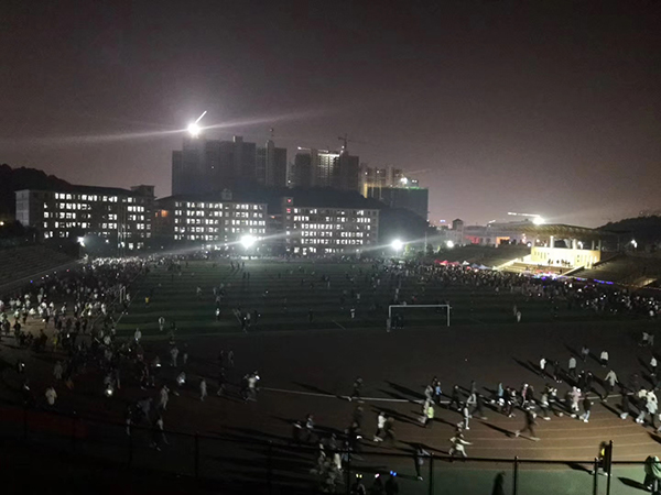 本网讯(记者 胡浪 谢娜)12月2日19时,由体育部主办,校团学生会体育部、社团联合会承办的“荧光夜跑,耀动未来”主题夜跑活动在田径场拉开序幕?;疃?8级、19级五千余人参加。