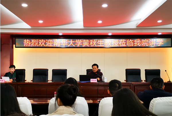 12月3日下午2点,学校办公楼六楼会议室座无虚席,“思政大讲堂”2019年第二期精彩开讲。主讲嘉宾是马克思主义理论博士后、南华大学马克思主义学院副院长黄秋生教授;讲座主题是《中国之治——学习领会十九届四中全会精神》。马克思主义学院院长邓艳君、校团委书记杨明、全体思政课教师以及学校团学会干部300余人聆听了讲座。