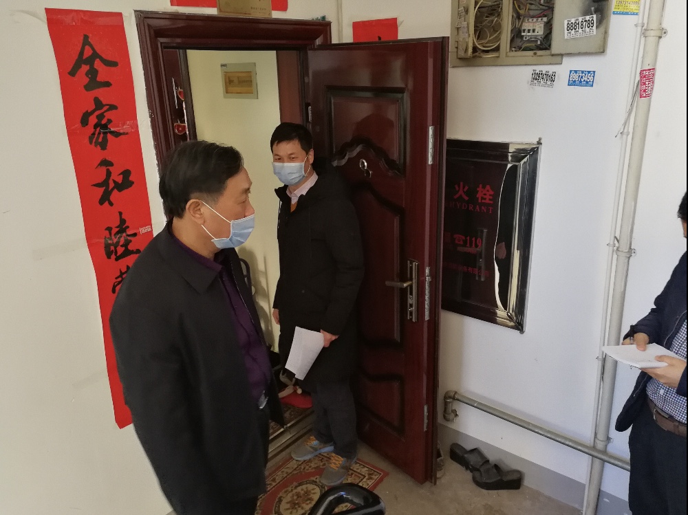 1月29日至30日,党委书记周忠新、副校长廖良林带领工作人员对校门岗亭、学生宿舍、办公楼、实训楼、职工宿舍等进行了认真细致的检查。在学校东南门住宅区,巡查人员对所有住户逐一进行走访排查。“新年好,我代表学校向您表示诚挚的慰问和祝福,同时也向您了解一下情况……”每到一户教师家中,党委书记周忠新总要亲自拜年,询问大家最近身体状况,了解出行史和接触史,对信息进行登记、汇总,并和工作人员一道宣讲防疫知识。在教师公寓和实训楼,周忠新等对3户隔离人员表达慰问,了解他们的最新情况,关心他们的生活状况,并叮嘱工作人员一定要随时关注并提供全力帮助。