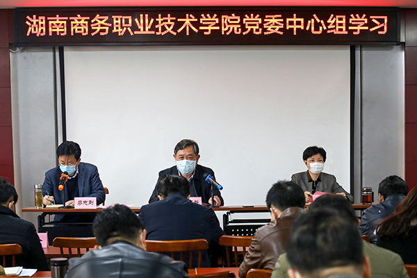 3月18日上午,湖南商务职院举行党委中心组学习,传达学习习近平总书记在统筹推进新冠肺炎疫情防控和经济社会发展工作部署会议上的重要讲话精神及中共中央办公厅印发的《党委(党组)落实全面从严治党主体责任规定》文件精神,学习解读《2020年湖南职业教育与成人教育工作要点》。全体校领导、中层干部正职(含主持工作的副职)、各总支书记、支部书记参加会议,会议由党委副书记廖志刚主持。