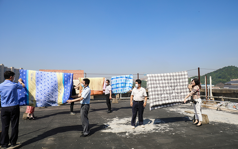 (通讯员 陈慧军) 为给返校后的学生提供良好的住宿环境,在征求学生诉求的基础上,5月12日,在副校长禹明华的带领下,由学生工作处牵头组织了第二次暖心“晒被行动”,机关五党支部全体党员、后勤服务中心党支部全体党员及在校辅导员参与了此次“晒被行动”。