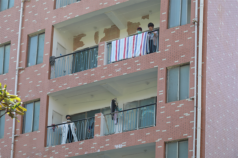 出于对学生隐私的尊重,在逐一征求各寝室学生意愿的前提下,“行动小组”开启了“在线接单”模式,分别为学生公寓4、5、8、9、10栋2层以上的寝室开门通风,晾晒被子。为便于区分,“行动小组”分工明确,擦栏杆、取被子、夹标签、晒被子、收回一整套流程井然有序,全部由专人负责,物归原位,叠放整齐。