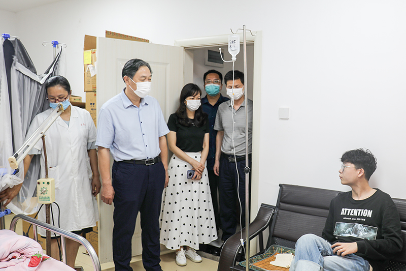 在校医务室,周忠新看望了正在治疗的同学和在一线工作的医务工作者,详细询问了同学们的症状及治疗情况。得知不少学生因为贪凉感冒,周忠新嘱咐随行工作人员,要进一步加强对学生的日常健康提醒和管理,密切监测学生健康状态,出现紧急情况要严格按照应急处置标准和流程处置,严禁在思想上麻痹和大意,在行动上松懈和打折扣。