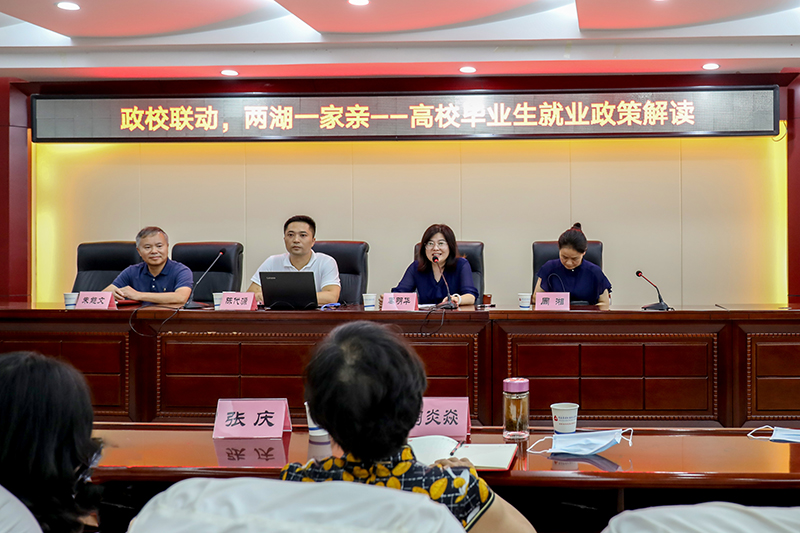 本网讯(记者 肖娅 刘芊宇)7月7日下午,“政校联动,两湖一家亲”系列活动之高校毕业生就业政策解读讲座在湖南商务职业技术学院举行,此次讲座特邀长沙市人力资源和社会保障局就业促进处处长陈代源现场为毕业生讲解高校毕业生就业政策。讲座还通过直播与我院对口帮扶的湖北财税职院师生以及关注大学生就业工作的社会各界人士共享。