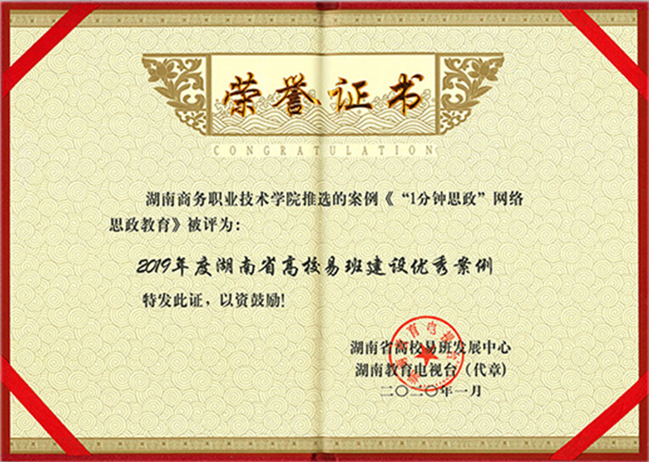 日前,从省教育厅易班发展中心获悉,我院从100多所高等院校中脱颖而出,被评为“2019年度湖南省高校易班建设先进单位”,成为3所获奖的高职院校之一。商务信息技术学院王珏老师的“‘1分钟思政’网络思政教育”案例获评为“2019年度湖南省高校易班建设优秀案例”。