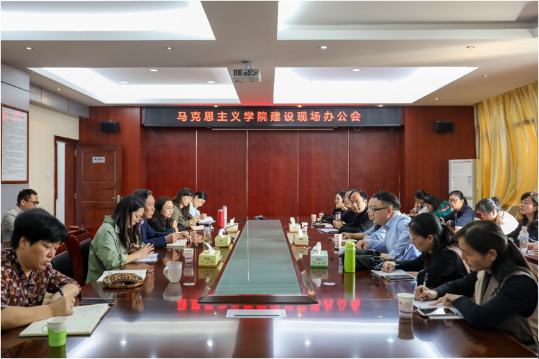 10月13日下午,学院党委书记周忠新深入马克思主义学院调研,并召开现场办公会,了解和解决思想政治理论课教学工作以及该院建设发展中存在的困难和问题,推进学院思想政治理论课教学改革和马克思主义学院建设。党委委员聂振华出席会议,党政办公室、组织人事处、教务处、财务与资产管理处等相关部门负责人及马院全体教师参会。