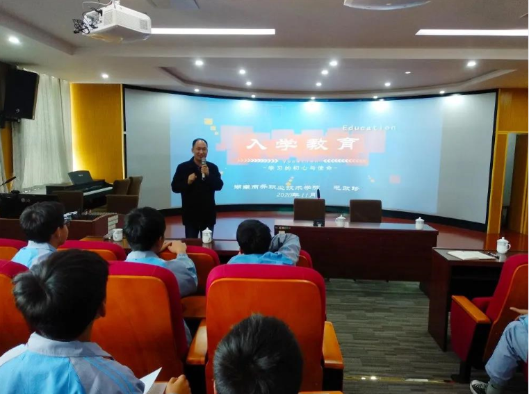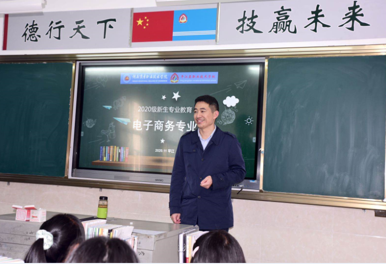 下午,师生见面会在平江县职业技术学校实训楼3D室举行。李定珍用“历史悠久、实力雄厚,名师荟萃、桃李芬芳,环境优美、设施齐全”介绍了学校办学特色、理念和近年来取得的办学成果。随后,寄语大专班学生:一是树立远大理想,胸怀报国之志,做紧跟时代的有为青年;二是勤学苦练本领,刻苦钻研知识,做适应新常态的尚技青年;三是弘扬社会文明,建设美丽校园,做一名履行新使命的向善青年;四是守住道德底线,保持理性判断,做一名迈向新征程的崇德青年。