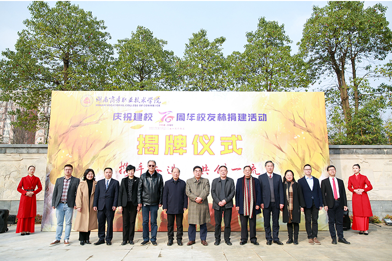 现场,省供销合作总社原党组书记、理事会主任陈德礼,省供销合作总社原一级巡视员彭建国,长沙学院前副校长、正校级领导郭清泉,学院原院长张新民、孔军山,湖南沃成科技有限公司董事长王静,校友代表广州市里欧快运有限公司总经理刘勇,学院党委书记周忠新、院长李定珍共同为校友林揭牌。
