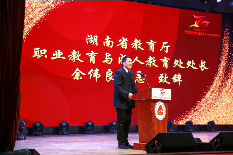 余伟良代表省教育厅表示祝贺。他指出,商务职院为社会、国家贡献了一大批基础厚实、工作踏实、作风朴实的高素质应用型人才,为我省高职教育创造了许多宝贵的经验。