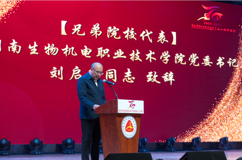 兄弟院校代表湖南生物机电职业技术学院党委书记刘启华也到场祝贺,希望两所高职院校今后能进一步加强合作,共同提高办学水平,努力为中部地区,特别是湖南省经济社会发展做出更大贡献。