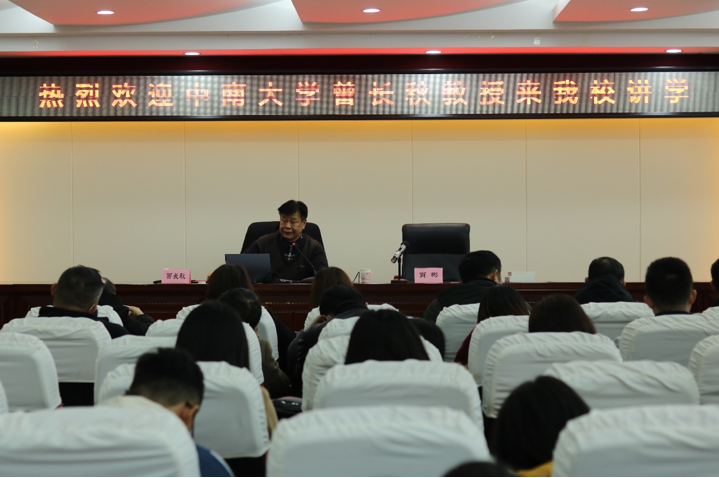 为深入贯彻落实习近平总书记关于在高???ldquo;四史”教育的指示精神,进一步弘扬湖湘红色文化,我校马克思主义学院特邀请著名红色文化研究专家、中南大学曾长秋教授前来讲学。12月1日下午2点,学校办公楼六楼职工会议室济济一堂,座无虚席,聆听讲座的教师和学生全神贯注,被精彩的内容深深吸引。