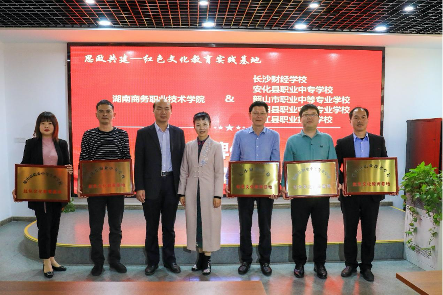 3月30日,湖南商务职业技术学院携手长沙财经学校、安化县职业中专学校、祁阳县职业中专学校、韶山市职业中专学校、平江县职业技术学校5所中等职业技术学院举行红色文化教育实践基地建设授牌仪式,他们将围绕红色文化教育培训基地共建、党员干部培训、德育教师培训、学生德育实践活动等展开合作,合力打造红色文化“教育链”。