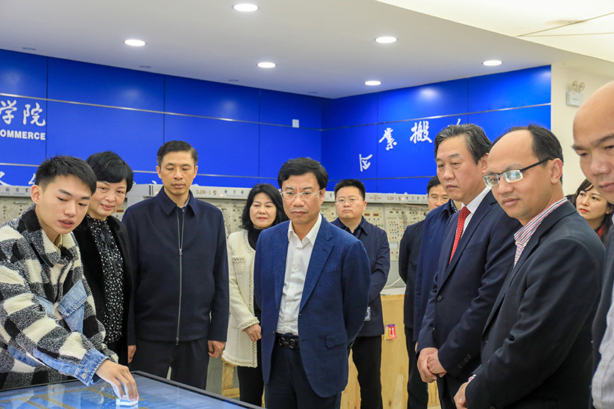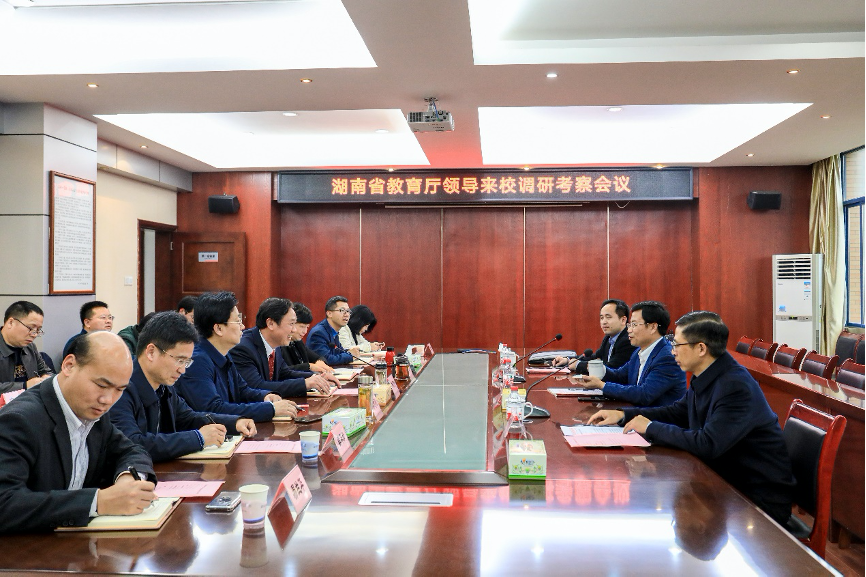 4月1日,湖南省教育厅副厅长王仁祥、省教育厅职业教育与成人教育处处长崔书芳、省教育厅职成处四级调研员何国清一行来到湖南商务职业技术学院调研指导工作,学院领导班子成员陪同调研。