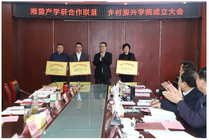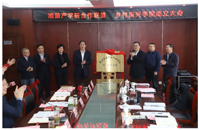 揭牌仪式上,湖南商务职院乡村振兴学院院长易能、湖南省食用菌研究所所长彭运祥、湖南果秀食品有限公司总经理沈凡超相继作表态发言。