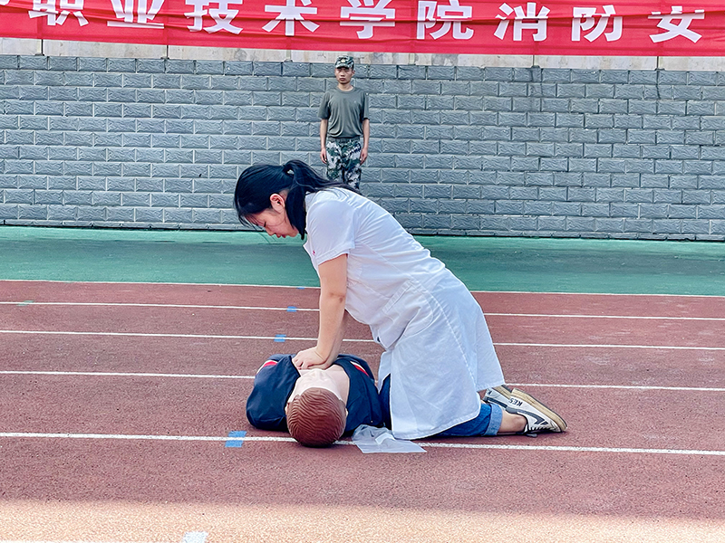 随后,救护队将现场“伤员”转移至集中救治点进行紧急救护,由专业的医护人员组成的医疗救护队到达集中救治点后立即对“伤员”进行伤情检查,现场展开伤口包扎和心肺复苏等医疗救护,并在成功救援后对患者进行情绪安慰。