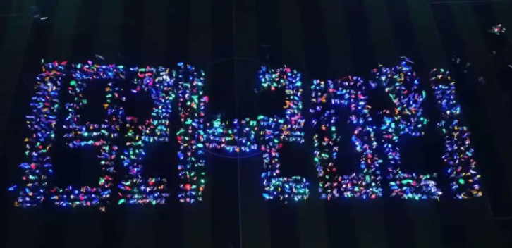 19时40分,千人方阵组合为“1921—2021”的图形,手握荧光棒,共同合唱《没有共产党就没有新中国》,以此来庆祝中国共产党诞辰一百周年。现场热闹非凡,千人齐声高歌,用自己的热情点燃了同学们的激情。