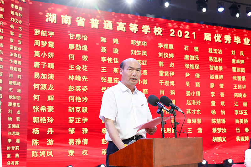 副院长易兰华宣读了2021届省级优秀毕业生、2021届校级优秀毕业生表彰通报,共有罗航宇等116名省级优秀毕业生及曾彩霞等323名校级优秀毕业生获表彰。