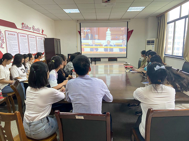 早上7时30分,全体院领导、中层干部、党总支书记、支部书记早早等候在六楼录播室,等待收看庆祝中国共产党成立100周年大会。此次收听收看涵盖了全校24个基层党组织,全院7000余名学生。大家纷纷通过网络、电视、手机等渠道收听收看,深入学习贯彻习近平总书记重要讲话精神,共同回顾了中国共产党的百年历程,见证了新中国在中国共产党领导下取得的举世瞩目成就。
