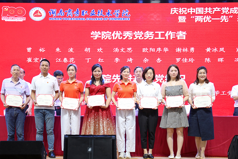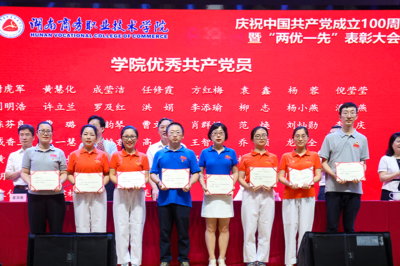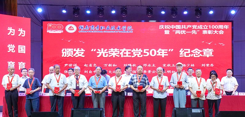 6月29日,湖南商务职业技术学院庆祝中国共产党成立100周年暨“两优一先”表彰大会隆重召开,一批来自学校教学、管理、保障服务等各条战线的先进集体、先进个人获表彰。大会还为15名老党员代表颁发“光荣在党50年”纪念章。