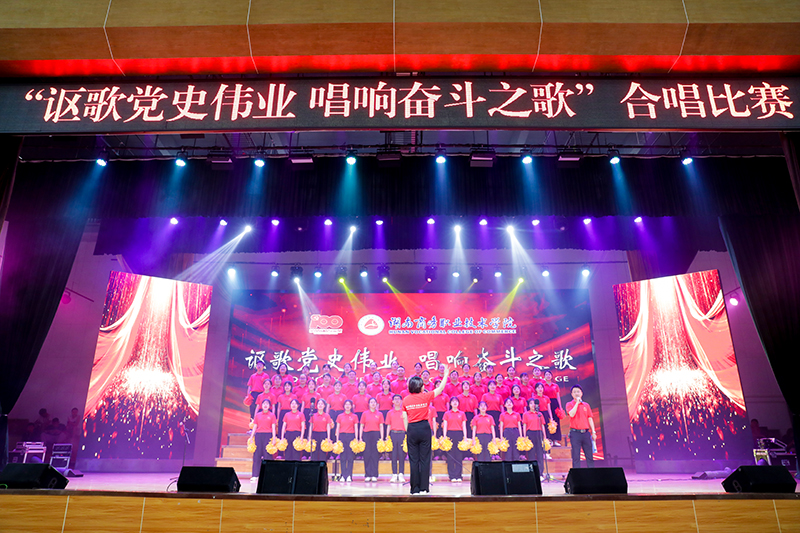 表彰结束,24个党支部组成9个歌唱团体唱响红色经典,献礼建党百年。由机关二三四党支部组成的合唱团,用高亢明亮的歌声带来一曲《歌唱祖国》,仿佛把人们拉回了那个烽火连天的战争年代,回忆起创党百年的创业维艰,不禁缅怀诸位先烈仁人。 “也不计报酬、钢铁的誓言,你看党旗飘扬的方向,是我要胜利的地方……”马克思学院党支部带来的《党旗飘扬的方向》唱出了他们坚定不移“听党话、跟党走”的拳拳爱国心,更是讴歌了中国共产党始终与人民群众同呼吸、共命运、心连心的崇高信念和为实现中华民族伟大复兴而不懈奋斗的远大理想,让现场观众重温了党带领全国各族人民奋力夺取革命胜利的光辉历史,观众纷纷跟着旋律打着节拍,与演员一起合唱,并报以热烈掌声。