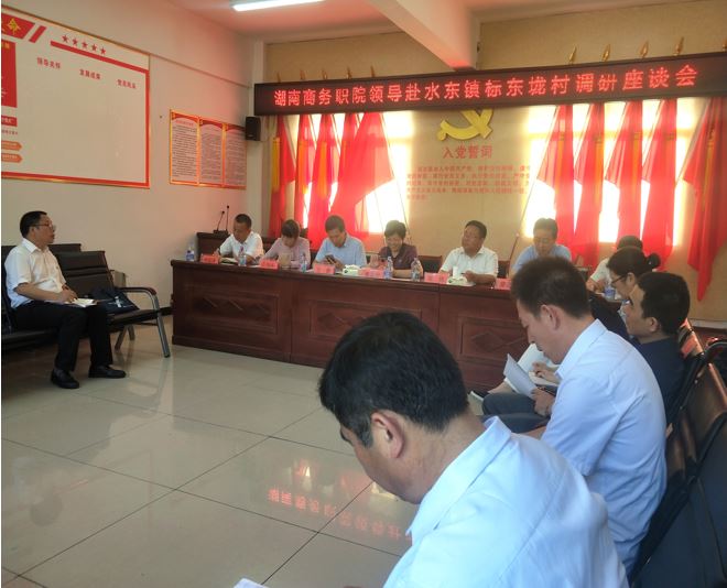 在听取完学院驻村工作队和村两委工作情况汇报后,李定珍代表学院表示,基层工作实属不易,精准扶贫是局部点对点的帮扶,乡村振兴是城乡融合发展、全面建设小康社会的重要举措、是全面帮扶,范围更广、难度更大。并提出四个方面要求:一是紧密配合、形成发展合力。依托省供销社、湖南商务职院一万多师生、县供销社和标东垅村三千多村民,共同发力,助推标东垅村发展振兴;二是加强中高职有效联动,培养本土人才。与溆浦县职业中专学校一道,在电商平台搭建、电商等专业人才培训、对口直升入学、贫困学生爱心助学、大学生三下乡支教等方面继续发力,助力标东垅村人才振兴;三是坚持问题导向,帮助驻村帮扶点逐年解决实际问题,精准帮扶标东垅村易返贫人员,继续采用脱贫攻坚期间“一对一”结对帮扶的办法;四是遵循自然规律选取产业、遵循经济规律发展产业。充分听取村民的意愿,依据当地种养殖历史和自然地理条件,做好顶层规划设计,充分调研、论证,选取合适的产业项目。遵循市场经济发展规律和村情,成立合作社(公司),以合作社+的产业发展模式,利用能人和带头人,统一生产、加工标准,逐步扩大规模,打造标东垅品牌,发展特色产业。