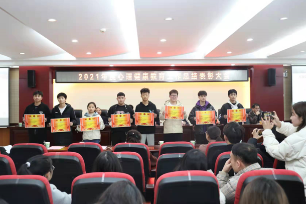 12月22日晚,湖南商务职业技术学院举行2021年度心理健康教育工作总结表彰大会。学院党委书记周忠新、学工处、保卫处、院团委以及心理健康中心等相关部门负责人以及各二级学院党总支书记、师生代表参加此次会议。