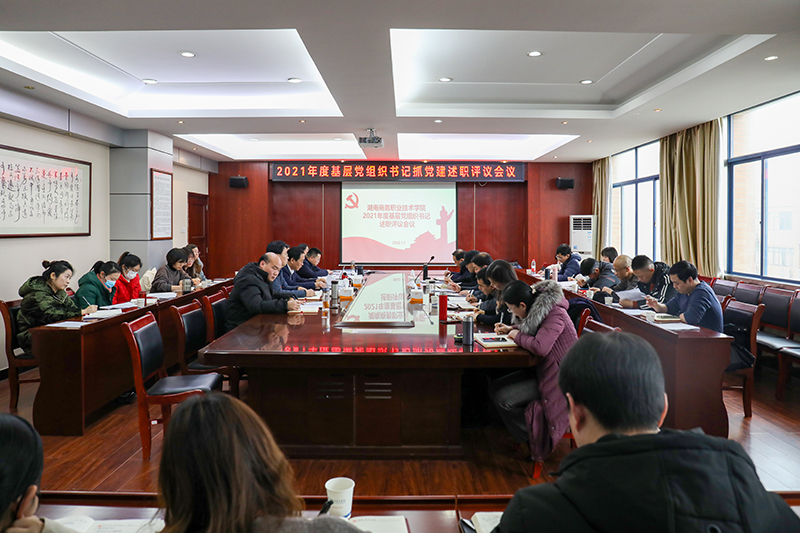 1月7日上午,湖南商务职业技术学院召开2021年度基层党组织书记抓党建述职评议会议,29名基层党组织书记现场述职,总结工作成效,提出破解工作瓶颈的措施,接受全面“检阅”?;嵋橛傻澄笔榧恰⒏痹撼ち沃靖罩鞒?。