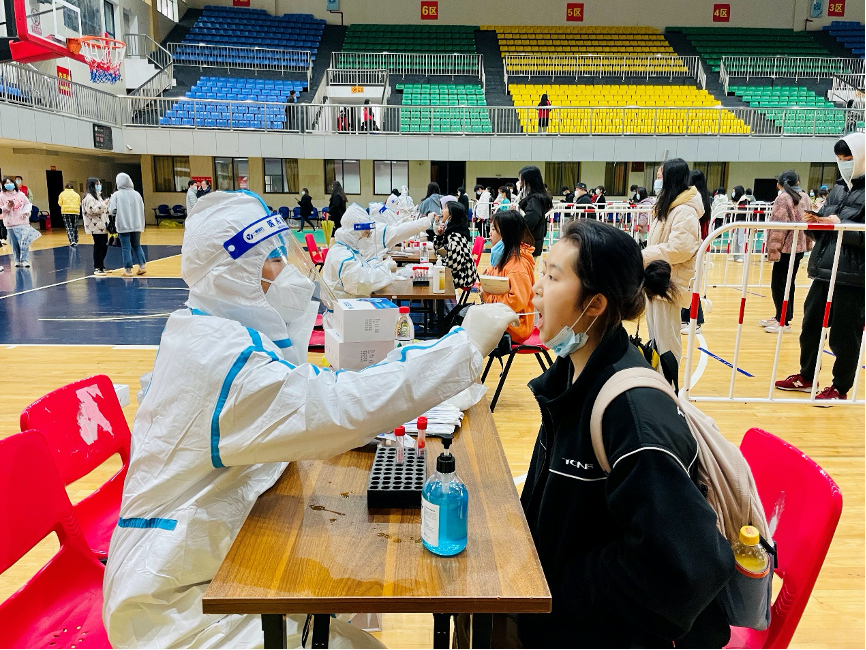 目前,学院已组织四次新冠疫苗接种,完成全程接种(第2针)共计10759人次,接种率为98.6%;先后高效、有序地开展了8次累计6万余人次全员核酸检测,截止4月6日,全员检测结果均为阴性。