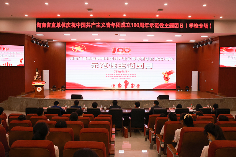 为激励广大团员青年以青春奋进之姿喜迎党的二十大、庆祝建团百年,引领团员青年坚定跟党走、建功新时代,5月13日上午,湖南省直单位庆祝中国共产主义青年团成立100周年示范性主题团日(学校专场)活动在湖南商务职业技术学院举行。此次活动共设立机关、企业、高校三个分会场,同步向省直各单位团组织直播活动现场情况,线上线下近130万团员青年参与?;疃珊仙涛裰霸和盼笔榧锹藜蚜嶂鞒?。