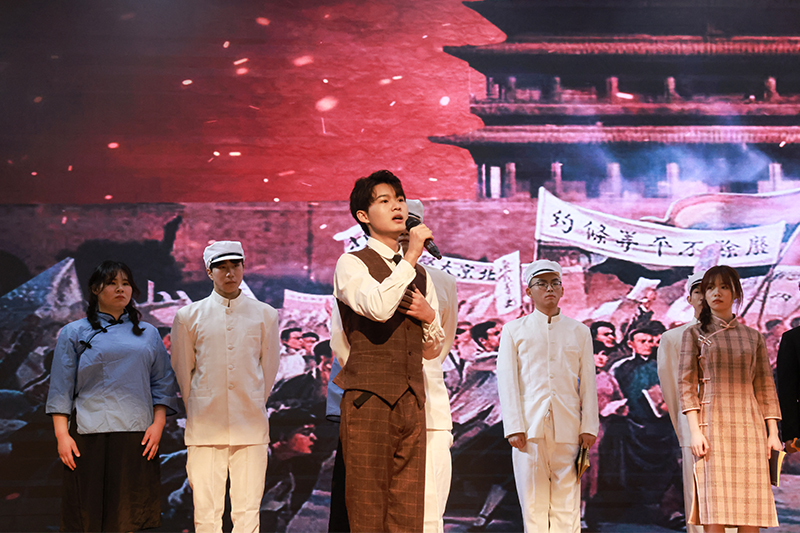 “同学们同学们快拿出力量,担负起天下的兴亡,巨浪巨浪不断地增涨;同学们同学们快拿出力量,担负起天下的兴亡!”在情景剧《我们的青年时代》中,团员青年们带领大家重温百年前,在国家陷入危难之际,爱国青年们发出的呐喊与思考,共同感受这段热血激昂的奋斗岁月。