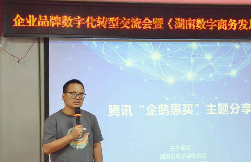 腾讯“企鹅惠买”湖南总经理王军辉作了主题分享,王军辉以腾讯实践案例对如何进行品牌数字化转型和数字化营销进行了深入解读,品牌数字化转型从营销推广、到占领客户心智、到形成品牌美誉度,无一不需要现代大数字等数字化手段,最终形成数字品牌。