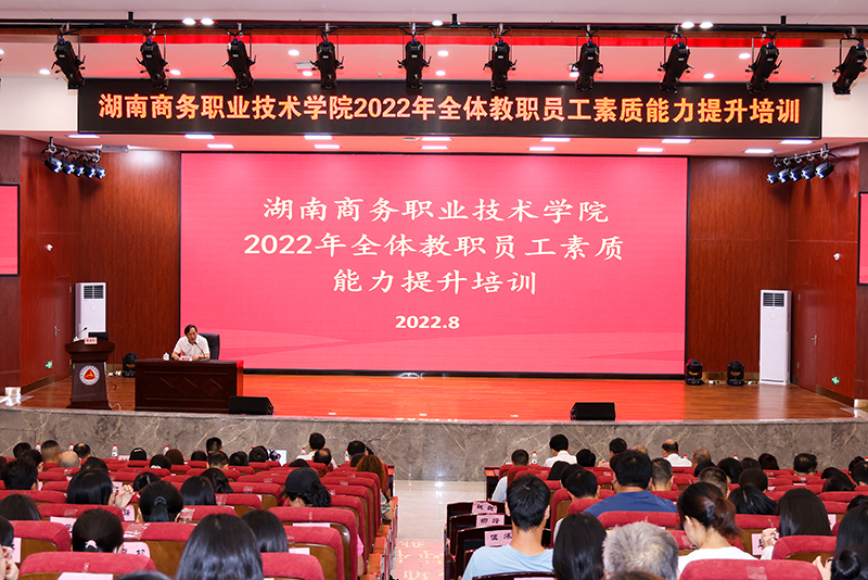 8月29日-30日,湖南商务职业技术学院举办2022年全体教职员工素质能力提升培训,围绕专业建设、团队建设、综合改革等内容,精准施训促提升,赋能学院高质量发展。全体院领导、教职员工参加培训。