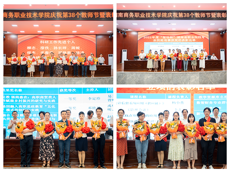 会上,党委副书记廖志刚、副院长易兰华、禹明华分别宣读了对科研工作先进个人、2021年省级教学成果奖获奖者、2022年度“楚怡杯”湖南省职业院校专业技能竞赛获奖者以及2021年省级精品课程与专业教学资源库项目和2022年智慧教育平台“大国长技”试点项目(第一批)立项的表彰通报。