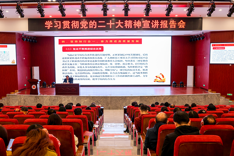 11月23日下午,学院举行学习贯彻党的二十大精神宣讲报告会,党委书记周忠新以“深入学习贯彻党的二十大精神 奋力开创学校高质量发展新局面”为主题,为广大师生宣讲党的二十大精神,引领师生感悟思想伟力,领会精神实质,汲取奋进力量。