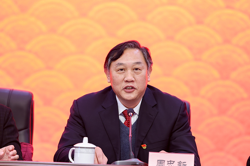 站在新的历史起点,党委书记周忠新强调要以习近平新时代中国特色社会主义思想为指导,以实现现代化职业教育发展为核心命题,坚持党的领导,紧抓政治建设统揽全局不放松,时刻绷紧政治建设之弦,持续强化理论武装,充分发挥党建引领作用,深入推进思想政治工作,扎实筑牢意识形态阵地,不断加强师德师风建设;要聚焦工作重点,锚定现代化职业教育发展目标不放松,进一步推进内涵建设、改革创新、人才队伍建设、全面从严治党;要牢记“三个务必”,推动学院高质量发展不放松,不断增强紧迫感、危机感,坚定信心,增强主动作为意识,加快发展,依托行业优势,特色发展,凝聚精气神,务实发展,立足新发展阶段、贯彻新发展理念、构建新发展格局,奋力书写现代化职业教育发展的商职答卷。