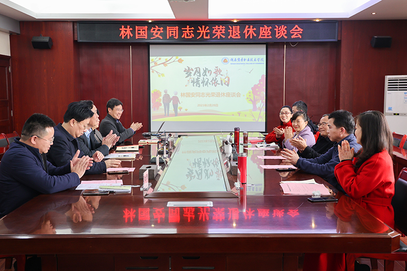 2月28日,办公楼523会议室内阵阵暖意,学院领导齐聚一堂,为原党委委员、副院长、纪委书记林国安同志举行荣誉退休仪式。党委书记周忠新出席仪式并讲话,代表学院党委向林国安同志为学院作出的贡献表示衷心地感谢和诚挚的敬意。