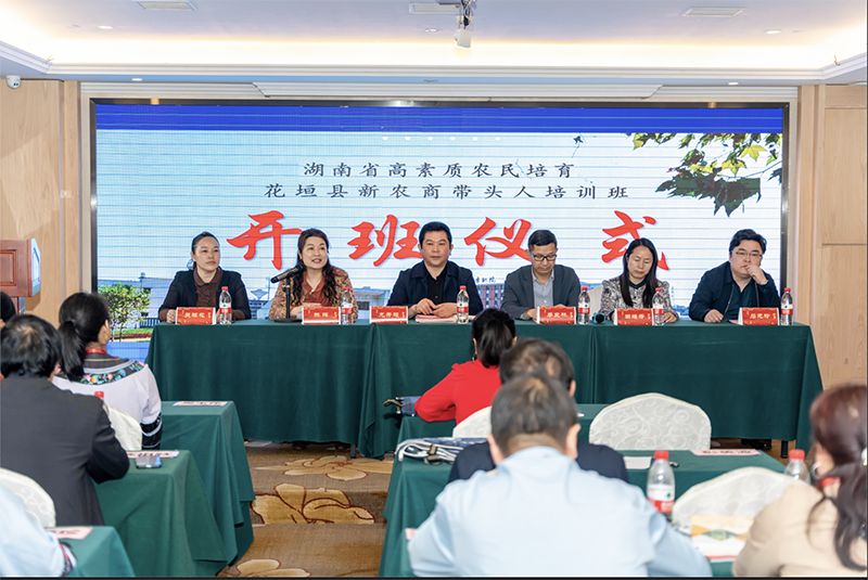 花垣县农村局办公室主任兼农广校校长龙秀超、信息与市场股长田维秀,花垣县农业广播电视学校主任吴琼花,湖南商务职院副院长廖良林、继续教育学院院长陈晖、副院长石元珍等人出席开班仪式。开班仪式由陈晖主持。