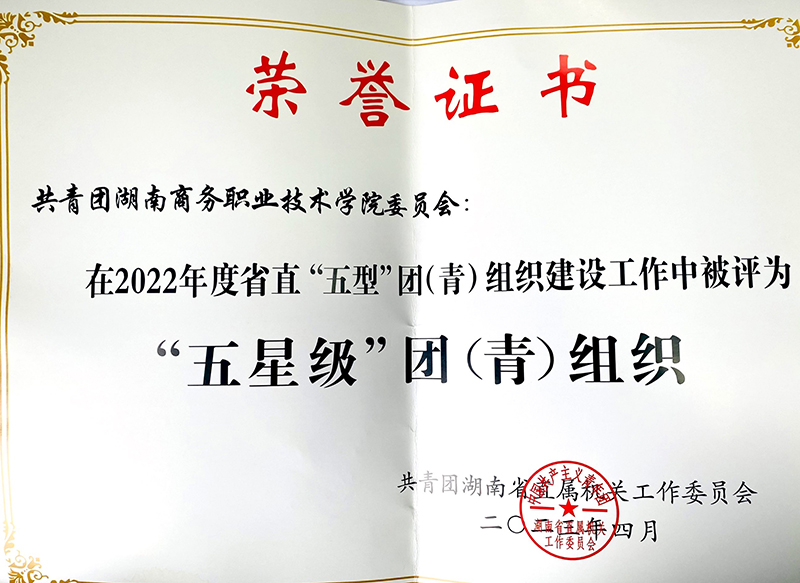近日,共青团湖南省直属机关工作委员会发布了《关于2022年度省直“五型”团(青)组织标准化建设考评结果的通报》,我院团委在2022年度省直“五型”团(青)组织标准化建设工作中被评为“五星级”团(青)组织。据悉,这是我院团委连续三年获评该项荣誉。