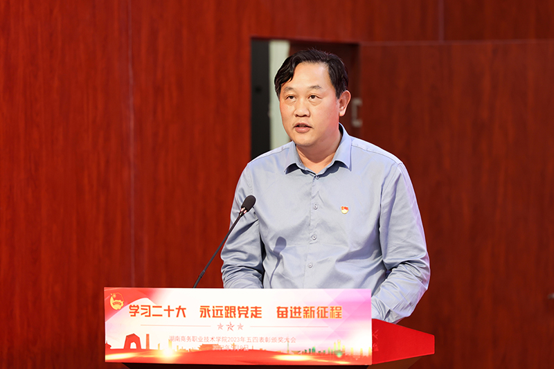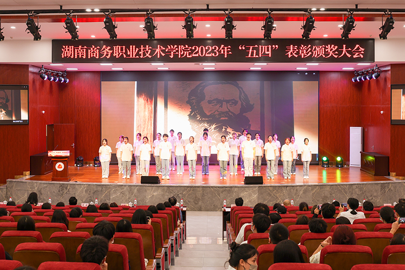 5月9日,湖南商务职业技术学院“学习二十大 永远跟党走 奋进新征程”五四表彰颁奖大会召开,党委书记周忠新、院长李定珍出席会议并为获奖集体和个人颁奖。党委委员、副院长禹明华主持会议。