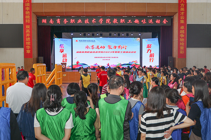 盘起头发、脱下高跟鞋、穿上运动衫.......6月13日,湖南商务职院“乐享运动 聚力前行”2023年教职工趣味运动会在体育馆欢乐开启。由教职员工组成的9支分工会队伍上演了一场体力与技能间的较量,现场气氛高潮迭起。