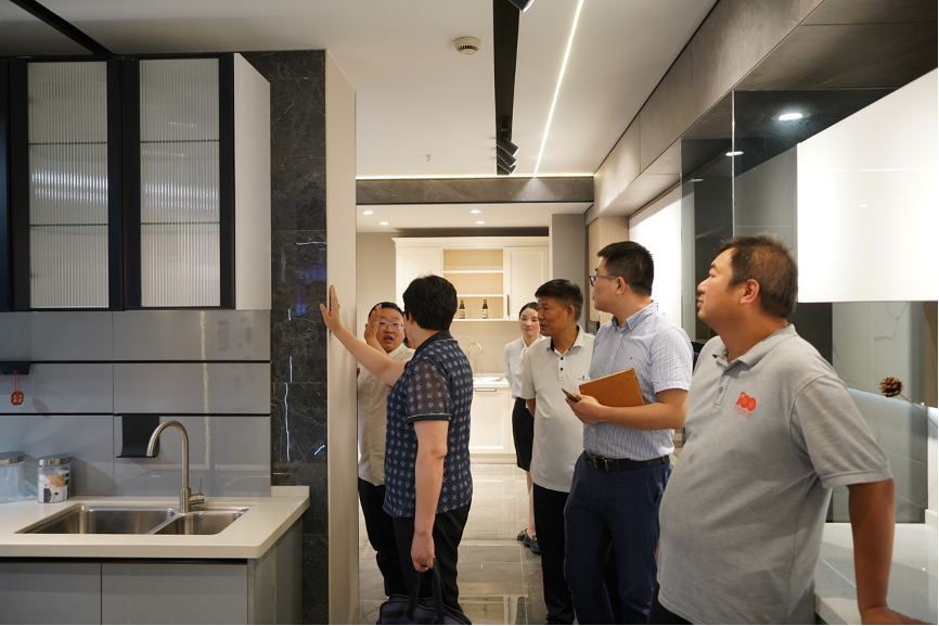 在实地考察企业生产一线和样板工程后,双方围绕校企合作召开专题座谈会。金煌科创集团董事长童彬原首先介绍了企业22年的发展历程,从单一的家装服务,发展为集装修设计施工服务、绿色建材研发生产、全屋家具定制、装配式内装于一体的全产业链科技企业;从数十位员工,到如今营业网点覆盖湖南全域,员工六七千名,年产值超20亿。童彬原董事长表示,人才培养是提升企业竞争力的关键,金煌科创集团每年能提供上千个就业岗位,特别是市场营销、电子商务、室内设计类等相关专业人才,年需求量达500人以上。他期待与湖南商务职业技术学院建立长期、深度的合作,通过定向招生、定向培养,打通人才培养“直通车”。