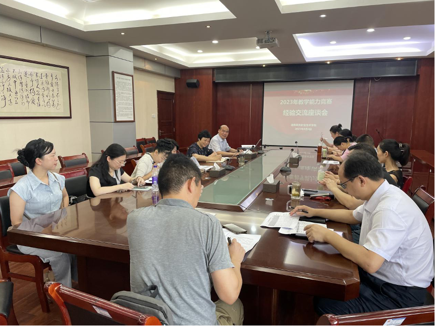 (通讯员 张丽莉)为进一步总结教学能力比赛经验,切实做好2023年国赛选拔赛备赛工作,8月3日上午,学院在崇德楼523召开教师教学能力比赛经验交流座谈会。院长李定珍、副院长禹明华、副院长易兰华、二级学院(部)负责人、各参赛教师团队、教务处相关人员参加了会议?;嵋橛梢桌蓟鞒帧?