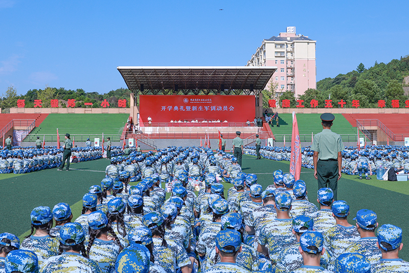 9月11日,新学期的集结号又一次激荡在商职校园中,4400余名新同学身着迷彩服集结在绿茵场地上共同开启了新一年的开学典礼暨新生军训序幕。