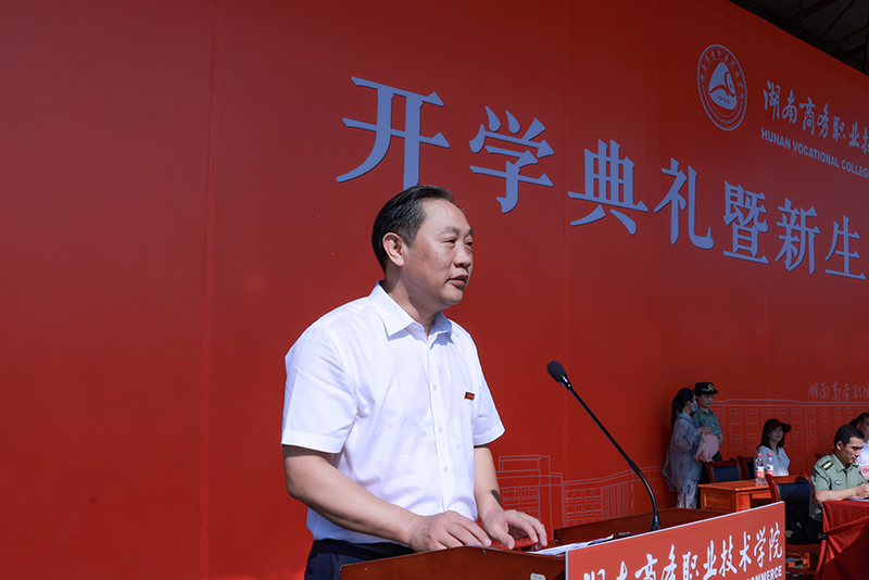 党委书记周忠新号召全体新生克服娇气、挑战自我,力争上好开学第一课,以严的纪律,过硬的作风,高质量完成军训任务。通过军训,不断增强国防观念,培养坚定顽强的意志,吃苦耐劳的作风,克难攻坚的意识,坚韧执著的品质,最终把军人的勇于拼搏、积极进取的精神带到今后的学习生活中去,为大学生活奠定坚实的基础。