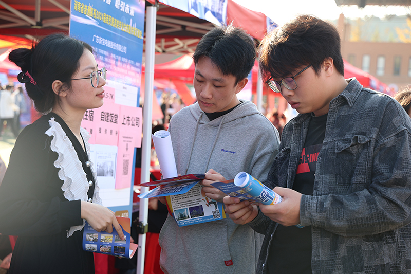 值得注意的是,招聘会还特别开辟了校友企业招聘“专区”,岗位涵盖信息技术、旅游管理、电子商务、财务管理、教育培训等领域,精准对接学院27个专业引才。部分同学表示:“很多面试官都是特地赶回来的学长学姐,不仅耐心答疑,还主动帮着分析核心竞争力,规划职业赛道,推荐最适合的岗位,这些都倍感亲切。”
